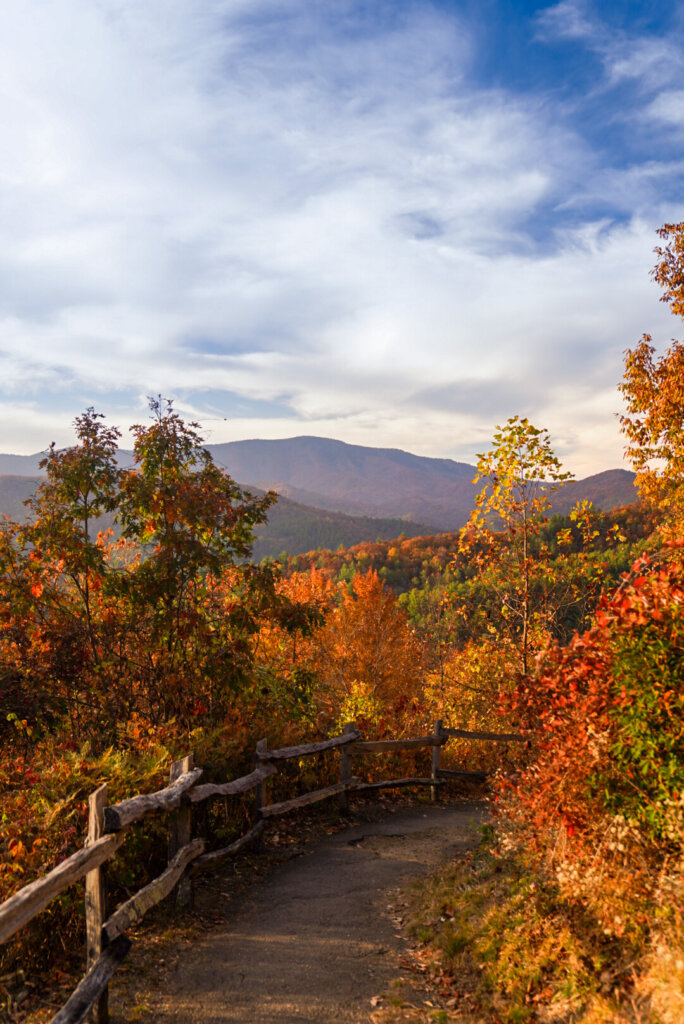 If you’re up for more of a challenge and want to experience fall colors in North Carolina in a bigger, bolder way, Grandfather Mountain is one to check out. This trail is a 2.5-mile loop with around 930 feet of elevation gain, and while it’s a shorter distance, it’s rated hard for a reason.