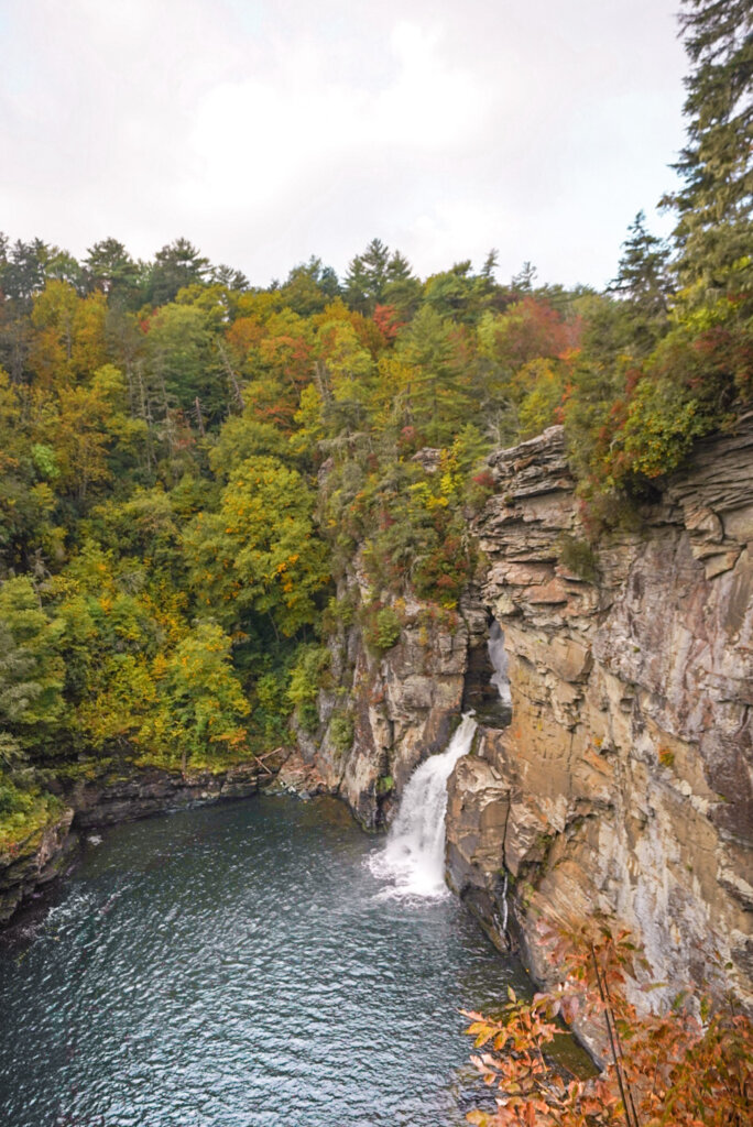 Linville Falls is a must-visit hike that’s beautiful and beginner-friendly, especially for fall colors in North Carolina. Depending on which overlooks you choose to visit, the trail ranges from 1.6 to 2.8 miles round trip with just 118 feet of elevation gain, making it a great option for all levels.