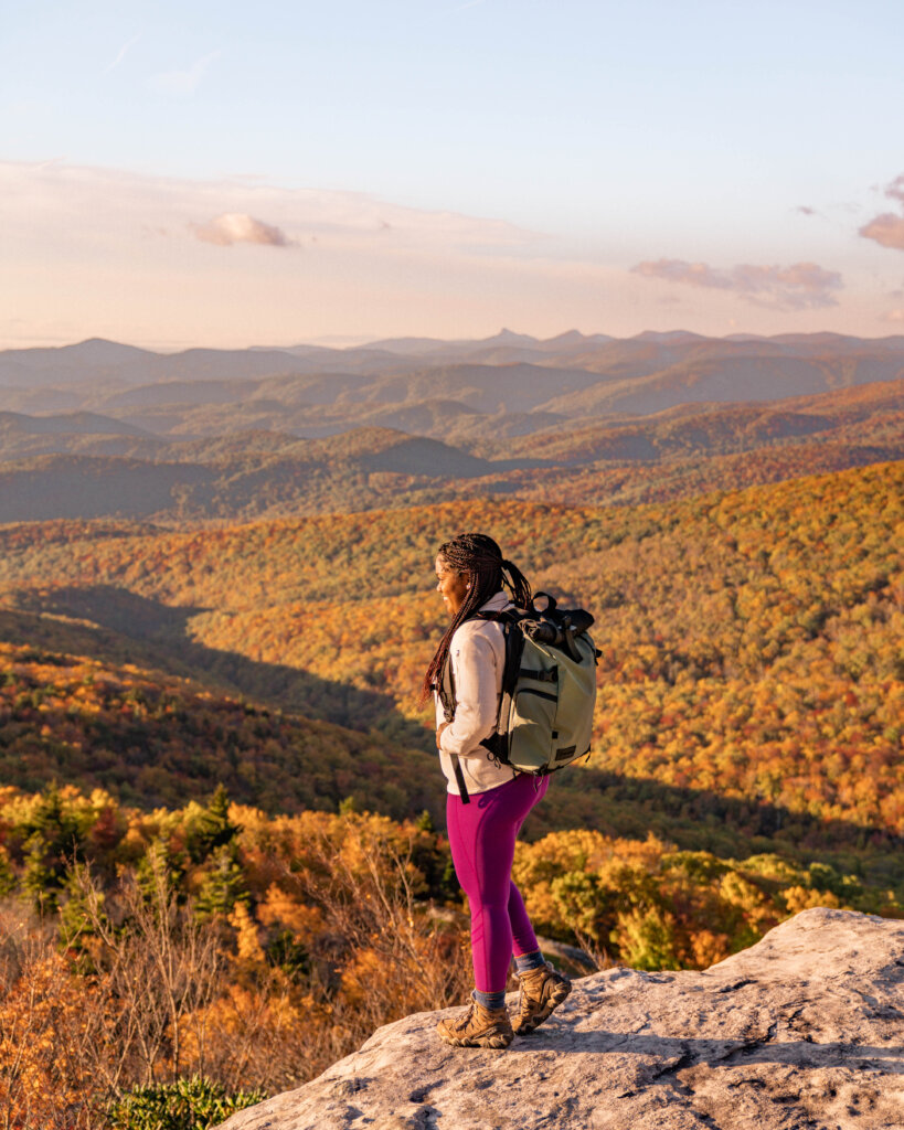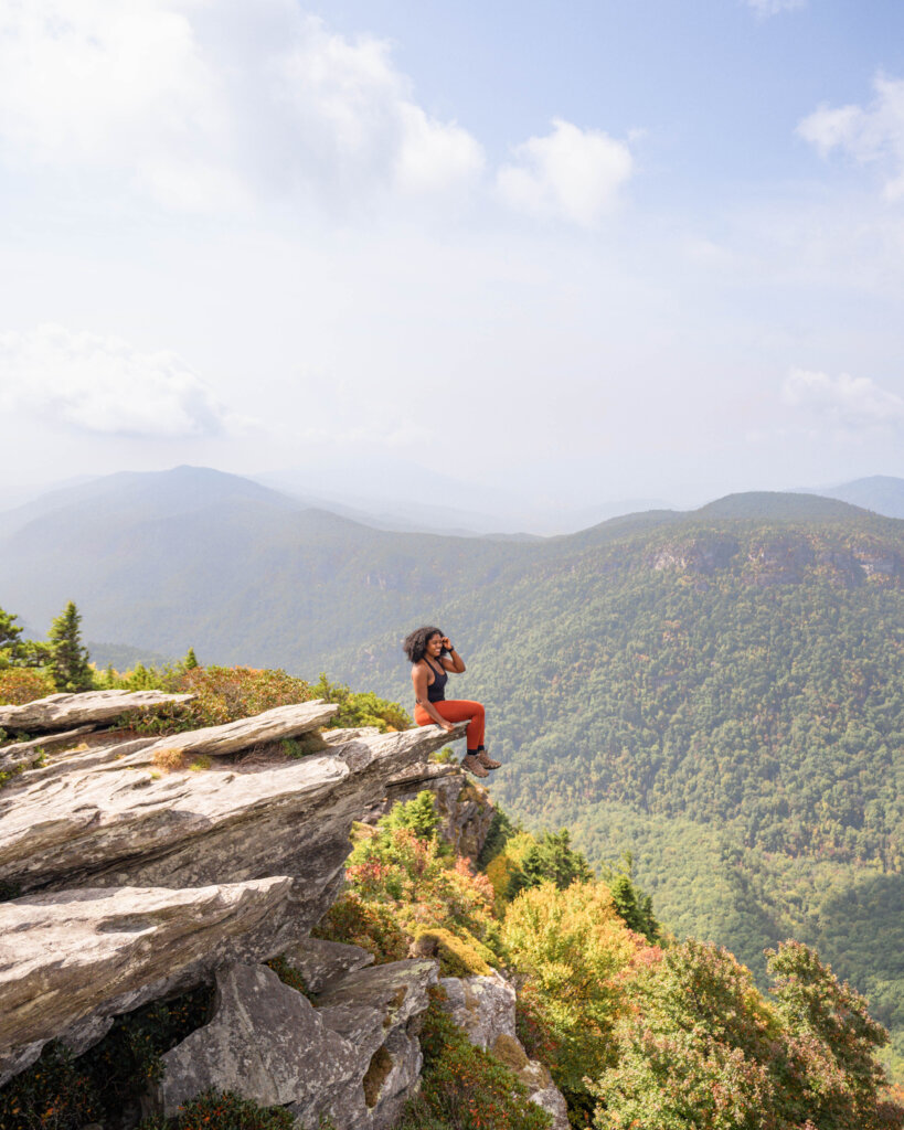 During peak leaf season, this whole area lights up with beautiful fall colors. And because you’re hiking at a higher elevation, the cooler temps and earlier color changes make it one of the best spots in North Carolina to catch fall foliage.