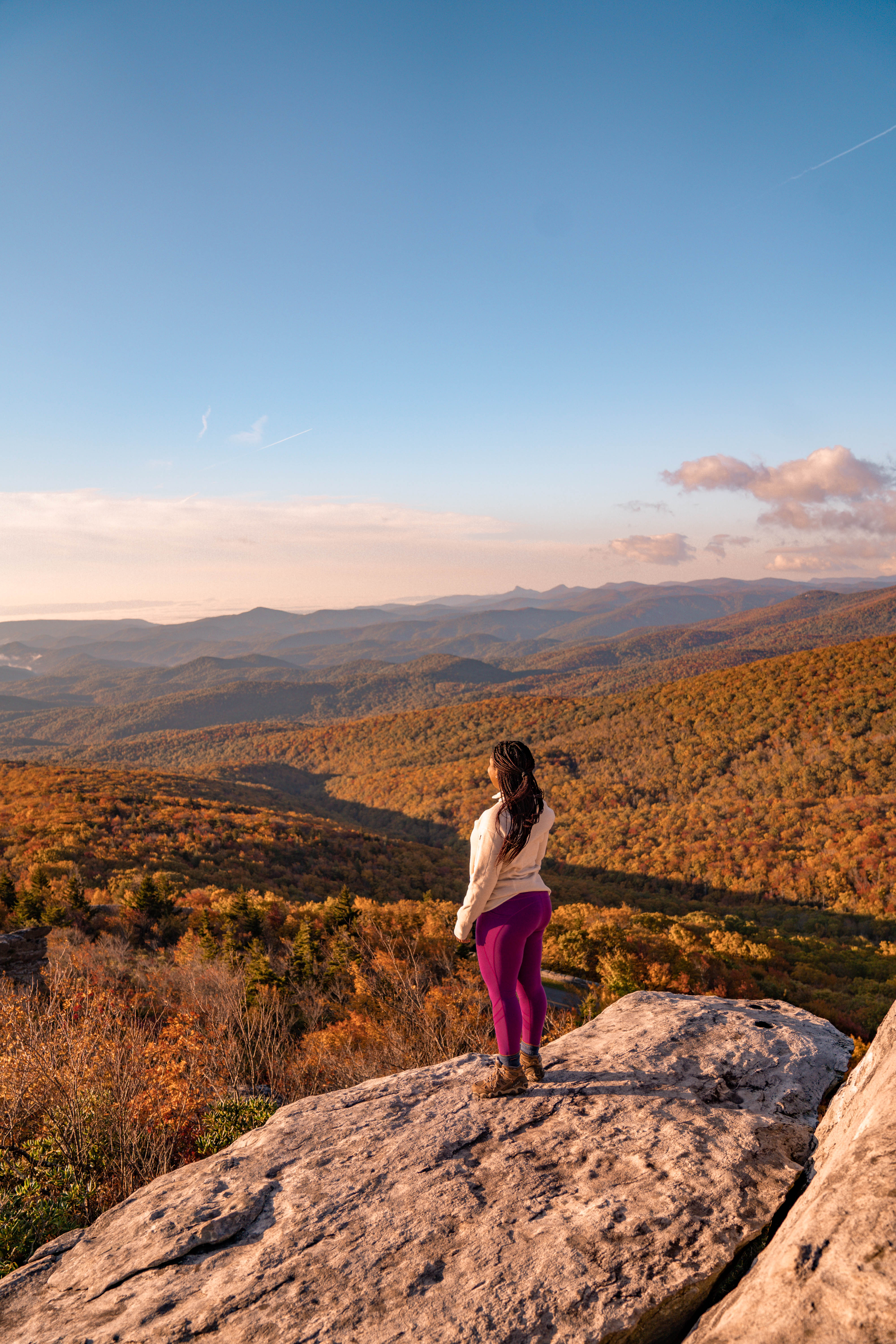 Once you reach the rocky summit, you’re greeted with some of the best views on the Blue Ridge Parkway. On a clear fall day, you can see across multiple states, with ridges stretching out in every direction and autumn colors lighting up the landscape. It’s a solid choice if you want big views without spending all day on the trail.