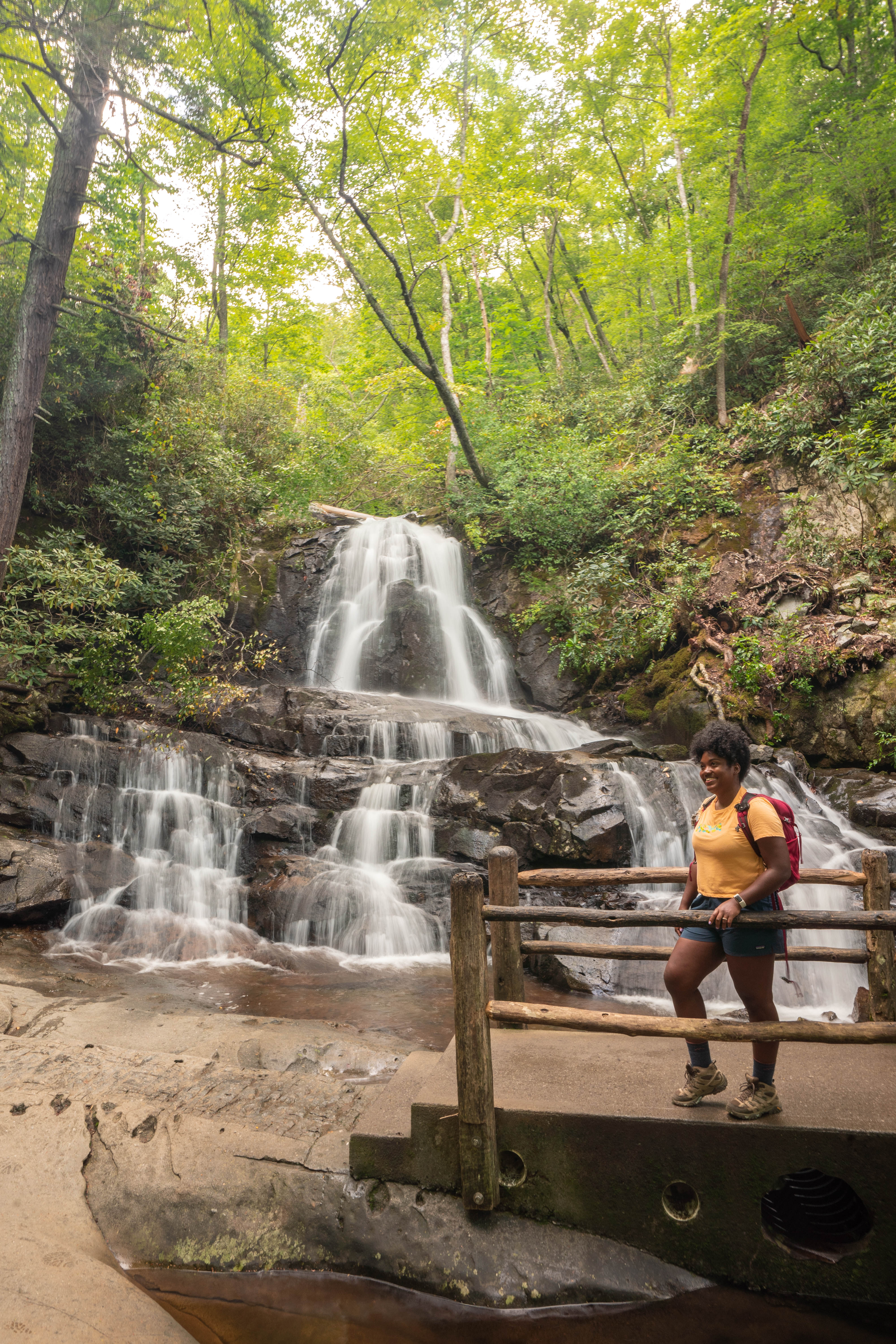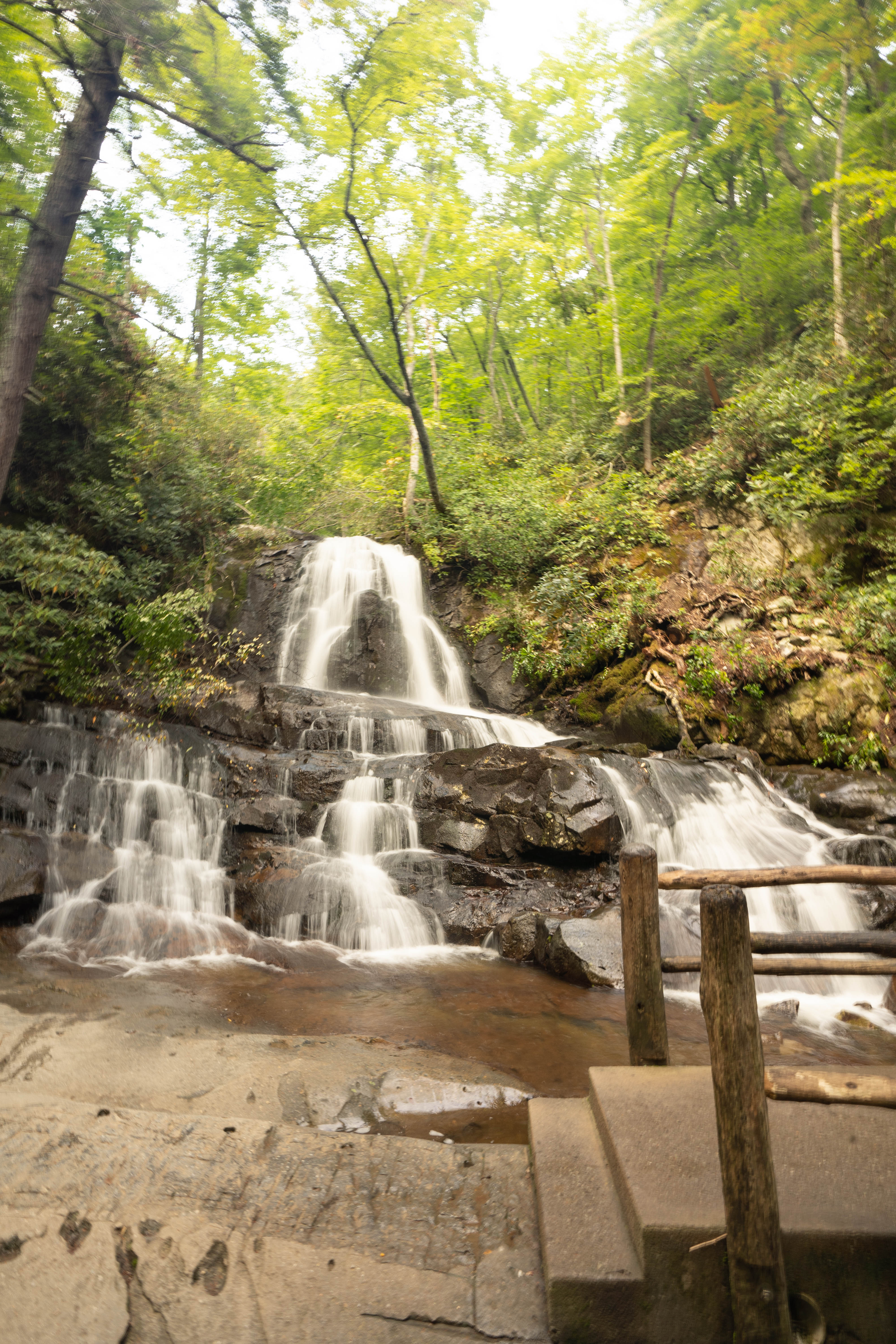 The waterfall itself is the tallest single-drop fall in the Smokies at about 80 feet. On sunny afternoons, a rainbow can appear in the mist, which is how it got its name.